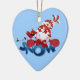 Un muñeco de nieve con mitones rojos y un gorra de corazones rojos y blancos disfruta el día con su amigo el cardenal rojo y el texto dice "NIEVE" en un porcelano Snowman y adorno de conservas de feriado cardinal.