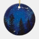"Starry Night Sky" Pintado a mano sobre la reproducción de trozos de madera. Esta hermosa escena del cielo nocturno de invierno está llena de preciosos detalles. Las obras de arte de Sydnie Starry Night Sky están impresas en adornos de cerámica. Viene empaquetado en una caja con una cinta para colgar. *Este ornamento es una copia de su diseño ornamental, no un cuadro original.