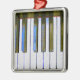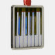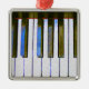 El ilustracion original de ZoeSPEAK en este Metalizado ornamento de cuadros es un cierre de un teclado de piano, con luces azules en las brillantes llaves negras - el regalo perfecto para un peluche de carga para el árbol de Navidad de un amante de la música. Disponible un binador, una taza, etiquetas de dirección y un mousepad coincidentes.