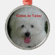 La foto de un perrito de Tuléar del algodón en una plata ribboned el ornamento.