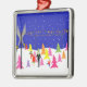 Este ornamento retro navideño de la granja navideña presenta una familia moderna, minimalista y personalizado de mediados de siglo en busca del árbol perfecto para el recorte. El diseño muestra a mamá, papá y Junior en un colorido estilo de los años 60, un árbol de Navidad que parece pertenecer a un programa especial de vacaciones televisado. Los llamaron la atención los brillantes focos amarillos que iluminaban el cielo de la noche y los hilos de coloridas luces Navidades, que se colocan de polo en poste. El terreno cubierto de nieve ofrece árboles de la variedad personalizado. No esperes encontrar un abeto azul aquí. Pero si la familia quiere un árbol rosa, púrpura, amarillo, naranja o rojo, ¡tienen suerte! Hey, hay incluso un par de cedros verdes, si eligen ir por una ruta más tradicional. La nieve sigue cayendo sobre la alegre familia cubierta con su atuendo de vacaciones. Junior está usando dunares azules y una camisa que es más roja que la nariz de un cierto reno. Papá lleva un traje negro con una corbata verde brillante. Pero es mamá la que pone el jaleo es el armario de esta familia. Lleva un vestido rojo con guarnición verde y un sombrero Santa a juego. Mamá y papá aún están celebrando, sin saber que Junior está haciendo una loca carrera hacia el árbol rosado caliente de sus sueños. ¡Chequea a cada lado, Junior! No haría para comprar un árbol con manchas calvas. ¿No lo sabrías? El árbol es tan perfecto como este diseño. De hecho, si este diseño fuera más perfecto, se oiría un coro de niños cantando al fondo.