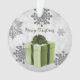 Decore su árbol esta temporada de vacaciones con un adorno de vacaciones de Navidades verdes. El diseño de los adornos incluye un regalo de Navidades envueltos y vibrante adornado con copos de nieve grises y blancos sobre un fondo gris. También hay artículos de regalo y de vacaciones disponibles con este diseño.