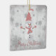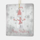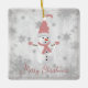 Decore su árbol en esta temporada de vacaciones con un adorno de cerámica rosada mate de invierno. El diseño de un adorno incluye un bonito muñeco de nieve con un gorra, una bufanda y guantes adornados con copos de nieve grises y blancos sobre un fondo gris. También hay artículos de regalo y de vacaciones disponibles con este diseño.