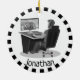 Ornamento de videojuegos con marco exterior negro y blanco y texto de personalizable en la parte delantera y trasera,