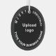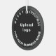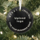 Feliz Navidad! Ornamento de vidrio con textos de felicitación de Feliz Navidad, nombre y logo de su empresa o negocio. Los diseños son textos blancos sobre fondo negro y sobre forma circular. Ornamento para decorar el árbol de Navidad en tu tienda, tienda u oficina. Ornamento para saludar visualmente a sus clientes esta temporada de vacaciones y para anunciar su negocio o promocionar su marca. Personalizar y úselo para crear conciencia de marca. Compruebe la apariencia después de cargar el logotipo y escribir su nombre comercial. Si la apariencia le resulta agradable, puede realizar su pedido ahora. Si necesita cambiar el tamaño y mover el logotipo y los textos para que encajen en este ornamento o en otros estilos que elija, por favor cambie la herramienta de diseño. También puede realizar otros cambios de acuerdo con sus preferencias en la herramienta de diseño, como cambiar el color de los adornos, el color del tipo de letra y el estilo del tipo de letra. Feliz Navidad! Te deseo más ventas esta temporada de vacaciones.