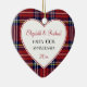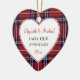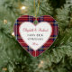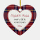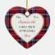 Elegante, pero simple, el patrón rojo de las mantas de vacaciones es el telón de fondo de nuestro adorno de aniversario de cualquier año. Para ver más de los primeros ornamentos de Navidad, haz clic en nuestro enlace "Tienda" de Zazzle debajo.