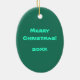 Este adorable adorno de vacaciones tiene una imagen de alce personalizado vestido con un sombrero de Santa Ana rojo y blanco y una proa verde, todo sobre un fondo verde Navidad. El fondo es el mismo fondo verde y el texto actualmente dice "Feliz Navidad 2012" pero puedes personalizarlo o cambiarlo fácilmente a lo que quieras. Si desea cambiar el tipo de letra, color, tamaño o ubicación del texto, puede hacerlo utilizando "Personalizar".