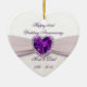Diseño de imágenes Digitalbcon con un tema de diseño de color púrpura y Damasco con una variedad de imágenes, formas, patrones, estilos y fuentes personalizados en este ornamento único de un "aniversario Boda Ametista". Este elegante y atractivo diseño se completa con letras de texto en personalizable tanto en la parte delantera como en la inversa de este adorno. Diga "Feliz Aniversario" este año de una manera única y personal con este adorno especialmente diseñado de Digitalbcon Images Design.