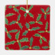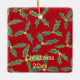 Este adorno decorativo incluye un cuadro de hojas verdes y huecas con flores amarillas sobre rojo. Hay un marcador de posición de plantilla delante para que escriba un saludo o Navidades y el año. El diseño sin soporte de texto está impreso en la parte posterior. Gracias por comprar CherylsArt en Zazzle.