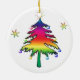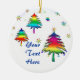 Los árboles de navidad del arco iris son coloridos, ornamento de la diversión. Un árbol lindo en un lado y tres árboles en el otro con el sitio para el texto. Colores simbólicos del arco iris para los temas del homosexual y lesbiana. Estos ornamentos de cerámica son grandes regalos de vacaciones y recuerdos. Comparta algunos de estos ornamentos festivos con sus amigos.