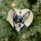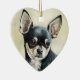 Este ornamento ofrece una reproducción de mi dibujo de lápiz coloreado original de una chihuahua.