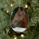 Caballo de la castaña dulce que se coloca en una cerca del prado.