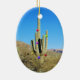 Este ornamento del bonito ofrece una fotografía de un cactus en ambos lados. El cactus se viste para el navidad con los ornamentos coloridos. Esto es perfecto para alguien que vive en el área del desierto.