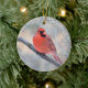 El cardenal rojo alegre tiene una vista de pájaro, de adorno cerámico. ¡La captura de ojos del Cardenal Norte puede ser usada como decoración todo el año!