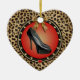 ¡El adorno perfecto para cualquier amante de los zapatos! Este hermoso y elegante adorno de corazón de cerámica de doble cara cuenta con un zapato de tacón negro de estilete en un borde de impresión animal. También hay adorables acentos de guarnecido dorado y corazones y un arco dorado. ¡Perfecto para tu amante de los zapatos favorito! Este adorno está disponible con una parte trasera personalizada también en nuestra tienda! También hay otros estilos de calzado y colores.