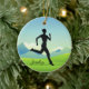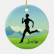 Ornamento personalizado de corredora de carreras con fondo de montaña y texto de personalizable, delante y atrás!