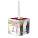 Exhiba sus fotos preferidas del día de fiesta de la familia en este ornamento embellecido personalizado del cubo de la foto. El top y la parte inferior del cubo se hace en un rojo de Borgoña, con un copo de nieve de oro grande. Tres lados del cubo tienen adornos decorativos. Personalice los cuatro lados con sus propias imágenes o texto para adaptarse a sus necesidades. Gran idea para un regalo para cualquier miembro de la familia y un gran recuerdo. Cortesía de las fotos de la muestra de Lorri Lang.