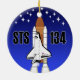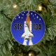 Conmemore el lanzamiento pasado del esfuerzo del transbordador espacial con este ornamento. Ofrece la lanzadera en un fondo azul marino honrado por 14 estrellas que representan a los 14 astronautas perdidos durante la misión de los 30 años del programa.