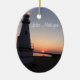 El ornamento del faro de la puesta del sol del lago Michigan muestra una foto de la puesta del sol sobre el faro en el nuevo búfalo, Michigan