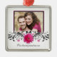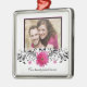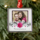 Boda de plantilla de fotografía con damasco floral rosa gerbera margarita en blanco y negro adornado con texto de personalizable en la parte delantera. Es fácil personalizar esto con tu propio texto y foto boda. La parte posterior puede grabarse si lo desea. Hace un buen regalo a la pareja boda, un buen favor de boda, un buen regalo de la novia o del novio al otro, o un agradable primer adorno de Navidad juntos.