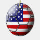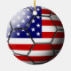 La bandera de los Estados Unidos de América grabó en relieve a través de un balón de fútbol en un ornamento de cerámica bilateral.