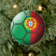 La bandera de Portugal grabó en relieve a través de un balón de fútbol en un ornamento de cerámica bilateral.