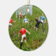 Un partido de fútbol compuso de fútbol plástico/de jugadores de fútbol incluyendo árbitro y encargado de la meta en la hierba