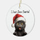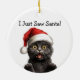 Gato Kitten Kitty Xmas Tree colgando de la decoración para los amantes del gato Colectivo de regalo felino. Este divertido ornamento de Navidad de Cat presenta un gato malicioso. ¡Este Gatito caprichoso no puede creer lo que ve cuando es Santa Claus! ¡Celebra tus locos y totalmente increíbles amigos de Feline con este regalo de Navidades de los amantes del gato! Kitty humorístico en una decoración navideña de Santa Hat para tu árbol de Navidad. El verso dice: ¡Acabo de ver a Santa!" Este divertido ornamento de Navidad es tan lindo que me hace querer estallar en canción..."¡Y un gato en el árbol de Navidad, Fa la la!"