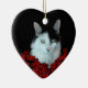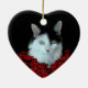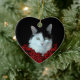 Ornamento del gato del navidad. Gato blanco y negro con el ornamento rojo de las bayas,