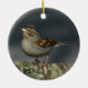Este el navidad adorna características una foto de un pequeño gorrión que salta lindo.