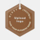 Feliz Navidad! Ornamento de vidrio con textos de felicitación de Feliz Navidad, nombre y logo de su empresa o negocio. Los diseños son textos marrones claros sobre fondo marrón y sobre forma hexagonal. Ornamento para decorar el árbol de Navidad en tu tienda, tienda u oficina. Ornamento para saludar visualmente a sus clientes esta temporada de vacaciones y para anunciar su negocio o promocionar su marca. Personalizar y úselo para crear conciencia de marca. Compruebe la apariencia después de cargar el logotipo y escribir su nombre comercial. Si la apariencia le resulta agradable, puede realizar su pedido ahora. Si necesita cambiar el tamaño y mover el logotipo y los textos para que encajen en este ornamento o en otros estilos que elija, por favor cambie la herramienta de diseño. También puede realizar otros cambios de acuerdo con sus preferencias en la herramienta de diseño, como cambiar el color de los adornos, el color del tipo de letra y el estilo del tipo de letra. Feliz Navidad! Te deseo más ventas esta temporada de vacaciones.