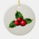 Aclare encima de su árbol de navidad y dé un tacto del calor y el entusiasmo de los días de fiesta a su decoración del navidad con este ornamento de cerámica del navidad del círculo simple con todo encantador. Ofreciendo una impresión preciosa del muérdago del acebo del navidad, el sistema contra un fondo grisáceo de marfil de la textura, este ornamento encantador es una de manera perfecta de conmemorar las vacaciones con su familia y hace un gran regalo para todos sus amados. Personalícelo con su propia fraseología.