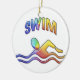 Este ornamento es perfecto para el nadador que usted conoce. La parte posterior se puede modificar para requisitos particulares con sus propias palabras.