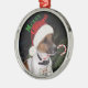 Levante el ornamento del navidad de Russell Terrier que ofrece al párroco juguetón Russell Terrier que sostiene el bastón de caramelo en su boca mientras que lleva un gorra de Santa y se ofrece en los ornamentos del navidad para su árbol.