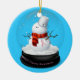 Ornamento del navidad de la conciencia del cáncer de pecho. Cuelgue en el árbol de navidad o cuelgue en la pared como decoración de Navidad. Pequeño muñeco de nieve lindo que lleva una cinta rosada para el cáncer de pecho. Usted puede cambiar el fondo eligiendo el customize>edit>background. Esto es un azul brillante.