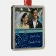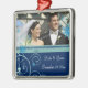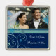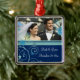 El personalizable del ornamento de la foto de la boda del invierno con su propia foto del boda y el boda fechan en azul y turquesa elegantes con el modelo festivo de los copos de nieve y de los remolinos. Un regalo elegante del navidad para la familia y los amigos o adornar su árbol de navidad u hogar para los días de fiesta. La de manera perfecta de recordar su día de boda del invierno.