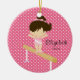 Personalice el pequeño ornamento trigueno lindo anticuado del navidad del chica del gymnist fijado en un fondo rosado de los lunares con un haz de balanza. Un regalo del navidad de la maravilla seguro que se atesorará durante muchos años para venir.