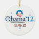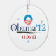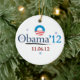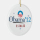 ¡Nuestro ornamento del navidad de Obama 2012 es la manera conmemorativa perfecta de la idea y de la diversión del regalo de Obama de celebrar la reelección histórica de presidente Obama! Doble las características del diseño echadas a un lado la señal icónica de la campaña de Obama con el texto en azul y el rojo, unidos con la silueta de Obama y la firma en el lado trasero. ¡Descuentos por volumen disponibles! Regalo o consigue éste para sí mismo.
