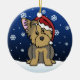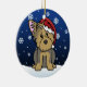 ¡Ornamento lindo del navidad de Yorkie, dibujado en dibujo animado del kawaii! Esta raza adorable del perro está llevando un gorra rojo de Santa, y los copos de nieve están cayendo todo alrededor de él. ¡Absolutamente querido, perfecto para el árbol de Navidad del amante del perro!