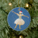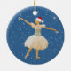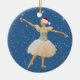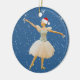 Esta pequeña bailarina preciosa es todo cubierta hacia fuera y alista para bailar su manera en su corazón en este ornamento colorido. Ella está llevando un gorra de Papá Noel y las escamas de la nieve están cayendo todo alrededor de ella. Su traje es blanco y verde claro.