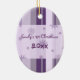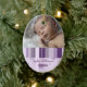El primer navidad del bebé adorna personalizable con su propia foto del bebé en púrpura con los copos de nieve y el modelo festivos de las rayas. Un regalo memorable del navidad para cualquier nueva mamá.