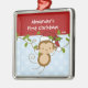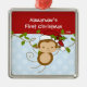 ¡El primer ornamento del navidad del bebé ofrece un mono adorable de Santa que lleva un gorra de Santa que balancea en un sistema de la selva en azul y blanca fondo punteado una polca! ¡Disponible en una forma del corazón en nuestra tienda! ¡Personalice con su información del bebé y fecha y usted están todos fijan para ir! Regalo anticuado maravilloso del recuerdo para el 1r navidad de su bebé.