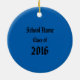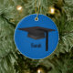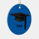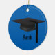 Un casquillo clásico de la graduación en fondo azul. Personalice con el nombre del graduado, el nombre de la escuela, y el año. Elija su propio color de fondo.
