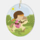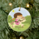 Personalice el pequeño ornamento principal rojo lindo anticuado del navidad del chica del jinete de lomo de caballo fijado en un fondo de la hierba y del árbol. El ornamento lindo del caballo ofrece a la niña más dulce que monta su potro. Un regalo del navidad de la maravilla seguro que se atesorará durante muchos años para venir.
