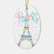 Torre Eiffel hearted del CONFETI A de la TORRE EIFFEL, multicolora ligera con una "París caprichosa" que llueve confeti. Opinión sobre un lado, opinión del día de la noche sobre el otro.