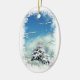 ¡Este ornamento del día de fiesta es un país de las maravillas del invierno! La tormenta de la nieve es excesiva y la paz ha establecido suavemente sobre esta escena preciosa del invierno. El árbol spruce tiene una manta de la nieve blanca, el cielo es un azul profundo con las nubes hinchadas y las ramas nevadas enmarcan la imagen. ¿Éste no será colgante precioso en su árbol de navidad?