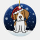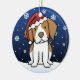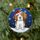 ¡Ornamento lindo del navidad del perro de aguas de Bretaña, dibujado en dibujo animado del kawaii! Esta raza adorable del perro está llevando un gorra rojo de Santa, y los copos de nieve están cayendo todo alrededor de él. ¡Absolutamente querido, perfecto para el árbol de Navidad del amante del perro!
