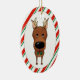 Ornamento grande chistoso del navidad del Pinscher miniatura de la nariz. El Pinscher miniatura está en astas y muérdago el sostenerse en su boca.