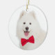 ¡Este el navidad hermoso adorna características un samoyedo con un bowtie rojo festivo!