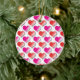 Corazón de amor rojo y rosa polka patrón de bonito doble cara de cerámica redondeado ornamento